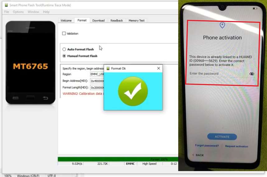 - And Open Huawei ID & FRP Address Text file from Huawei ID & FRP file and put the address code in manual format flash and hit start button